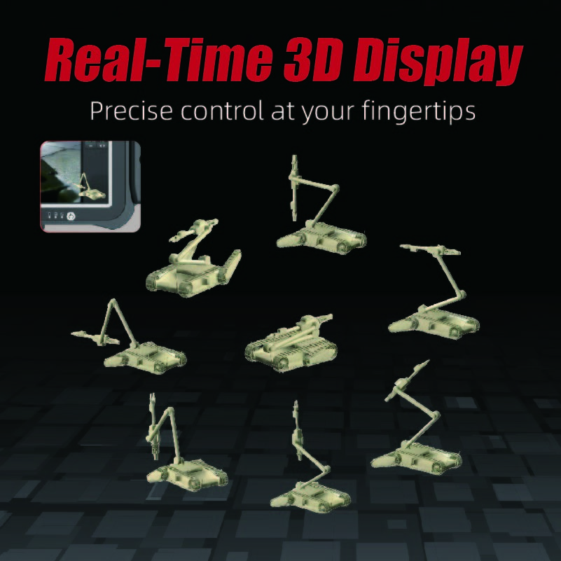 از آنجایی که ربات های پاک کننده بمب اغلب در طول مأموریت ها از خط دید خارج عمل می کنند، اطلاعات زمان واقعی در مورد زاویه ها و موقعیت های فضایی مفاصل ربات برای اپراتورها بسیار مهم است. The REOD450 uses high-speed links and advanced computer technology to not only achieve real-time feedback of the robot's status information but also to employ leading 3D virtual display technology for remote real-time display of the robot's 3D statusاین باعث می شود ربات احساس کند "نزدیک دست" حتی زمانی که "دور" است، اجازه می دهد تا برای کار بصری تر.