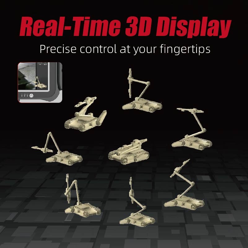 از آنجایی که ربات های پاک کننده بمب اغلب در طول مأموریت ها از خط دید خارج عمل می کنند، اطلاعات زمان واقعی در مورد زاویه ها و موقعیت های فضایی مفاصل ربات برای اپراتورها بسیار مهم است. The REOD400 uses high-speed links and advanced computer technology to not only achieve real-time feedback of the robot's status information but also to employ leading 3D virtual display technology for remote real-time display of the robot's 3D statusاین باعث می شود ربات احساس کند "نزدیک دست" حتی زمانی که "دور" است، اجازه می دهد تا برای کار بصری تر.