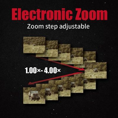 طیف ژوم الکترونیکی از 1.00x تا 4.00x را ارائه می دهد، که امکان تمرکز دقیق و جزئیات بهبود یافته را در فاصله های مختلف برای تجسم واضح هدف فراهم می کند.